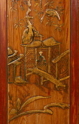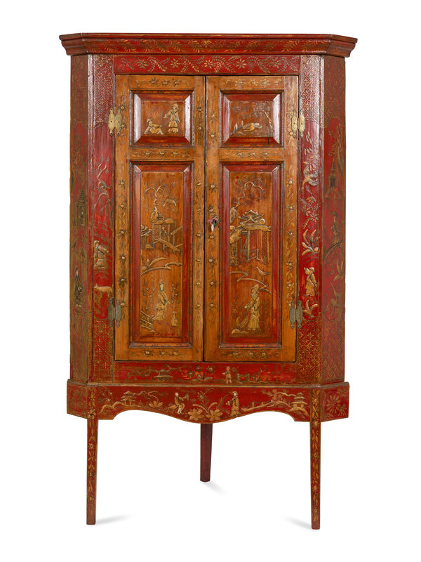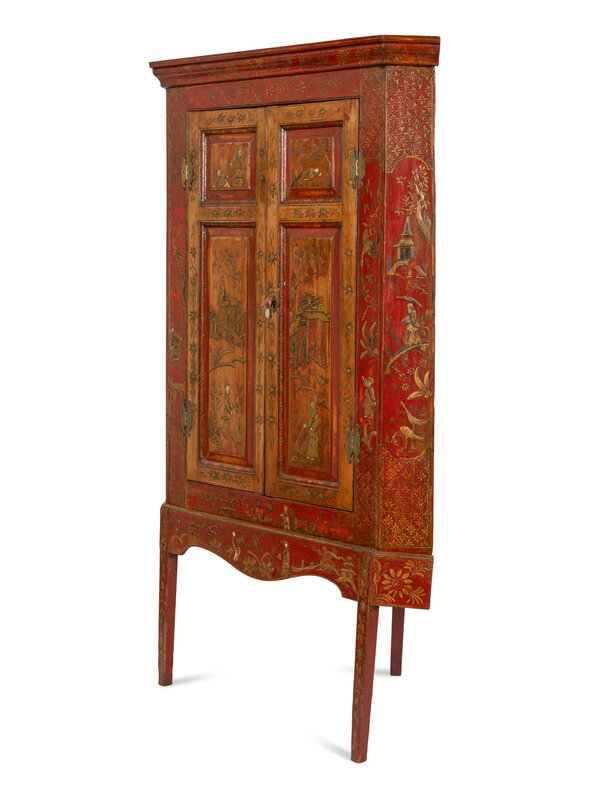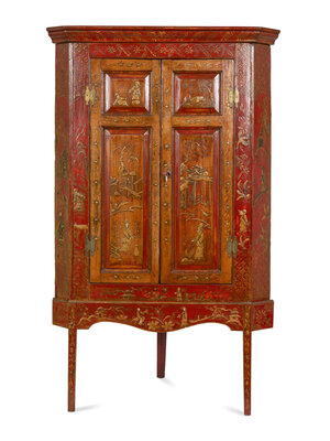 A Georgian Style Red Japanned Corner Cabinet