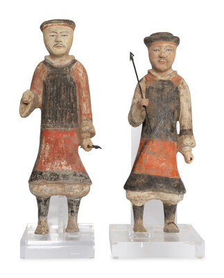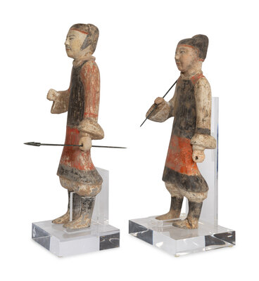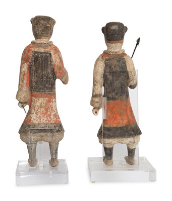 Two Chinese Painted Pottery Standing Warriors