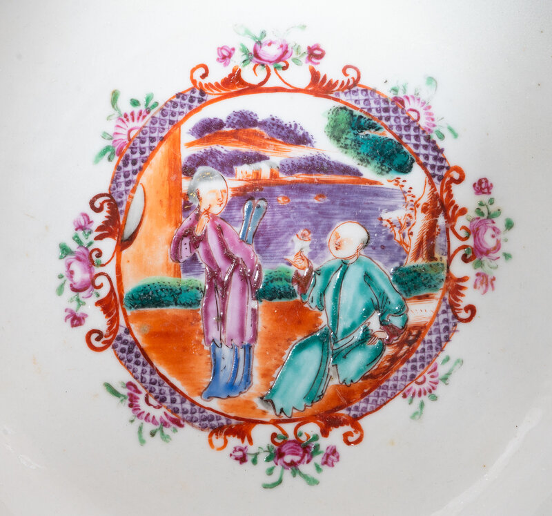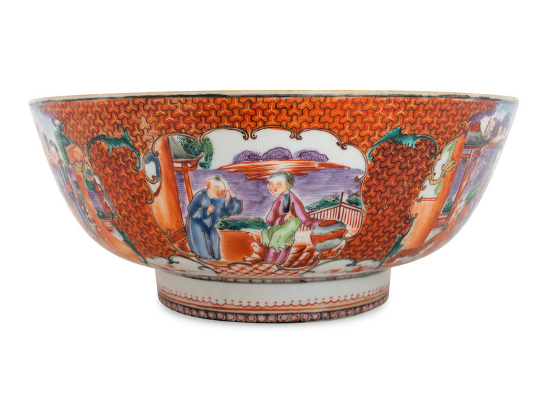 A Chinese Export Mandarin Palette Porcelain Punch Bowl