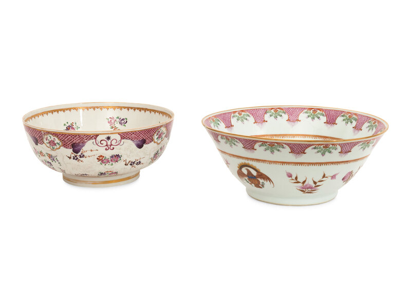 Two Chinese Export Style Porcelain Punch Bowls
