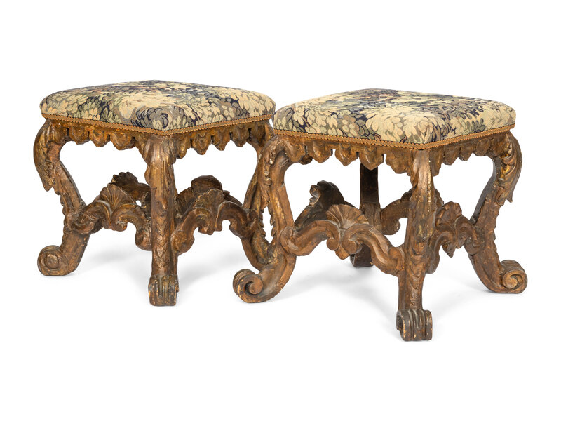 A Pair of Continental Baroque Carved Tabourets