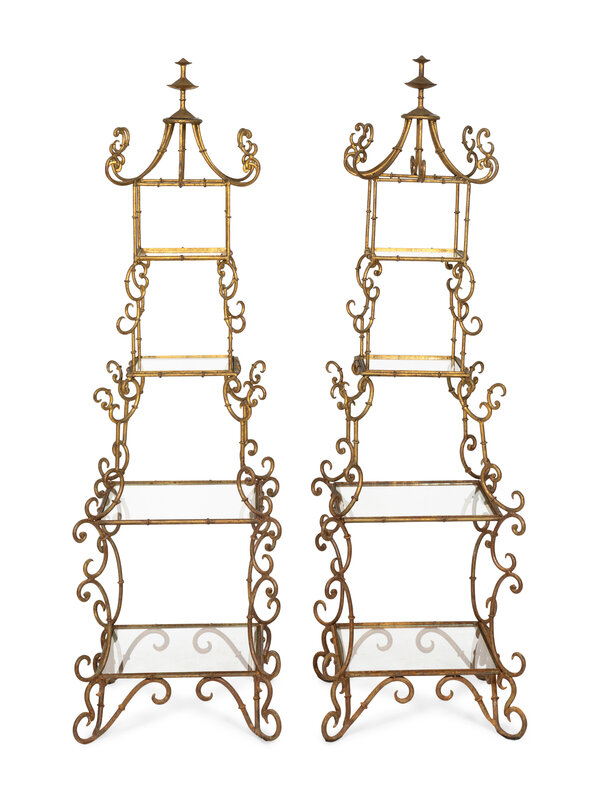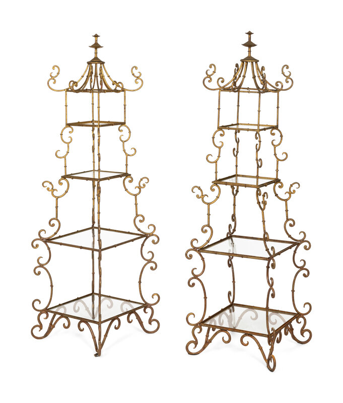 A Pair of Italian Gilt Metal Pagoda-Form Etageres