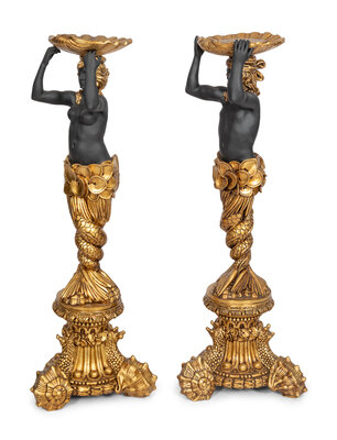 A Pair of Gilt and Black-Painted Torchère Figures of a Mermaid and Merman