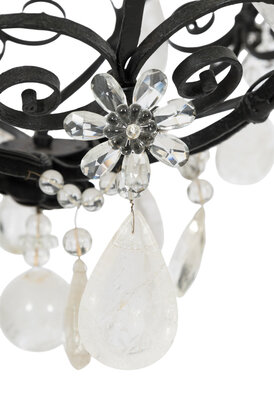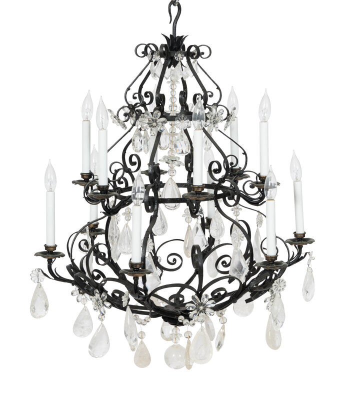 A Wrought Iron and Rock Crystal Twelve-Light Chandelier