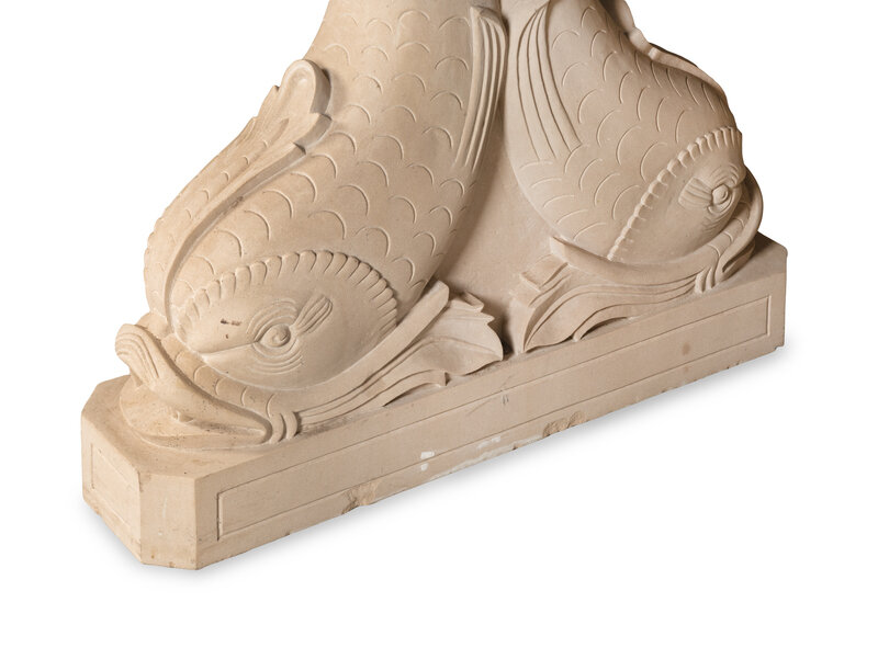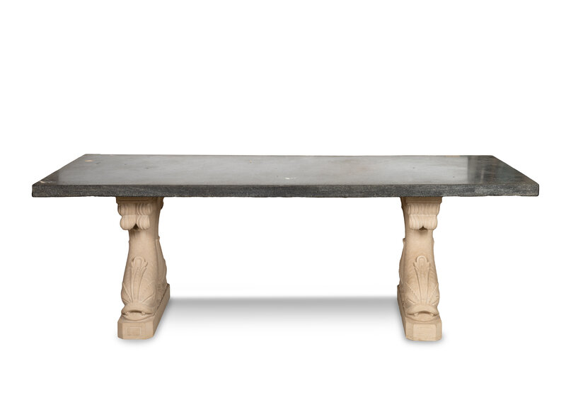 A Cast Stone Dolphin-Form Double Pedestal Table