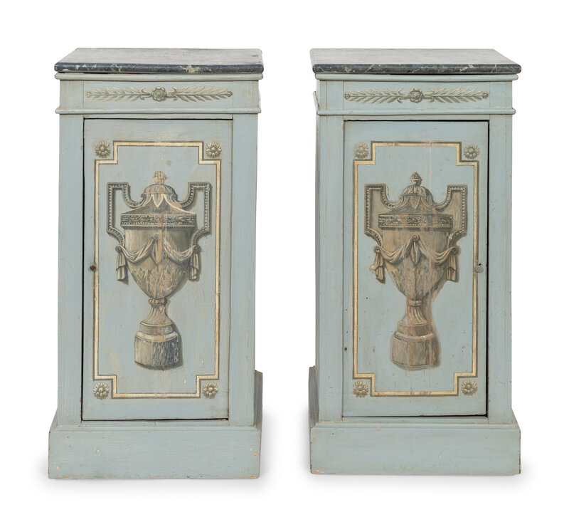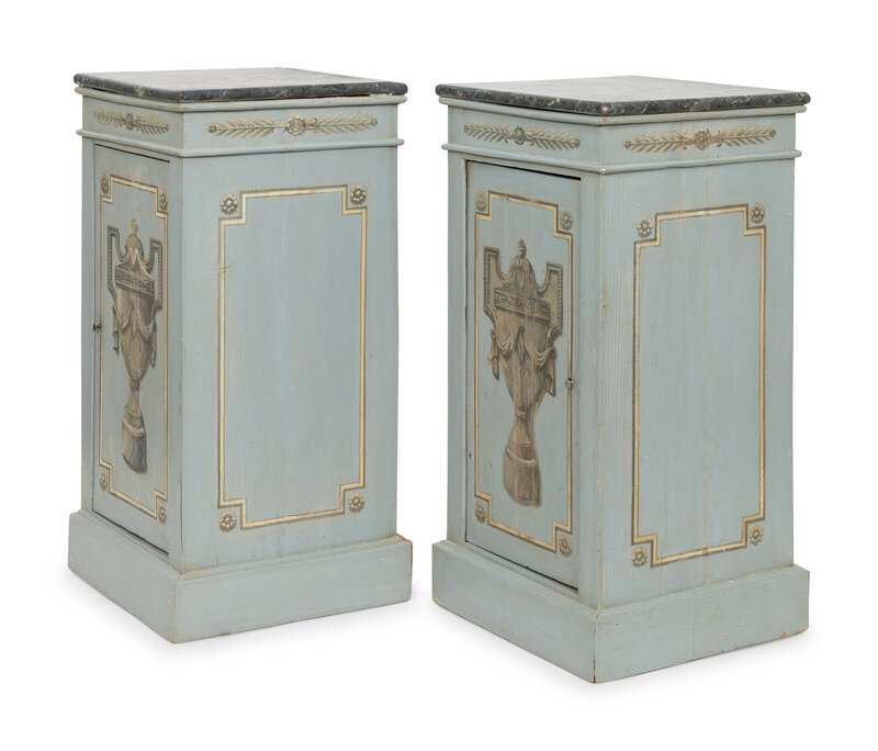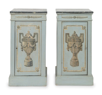 A Pair of Neoclassical Paint-Decorated Pedestal Cupboards