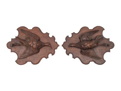 Two Black Forest Style Carved Game Plaques