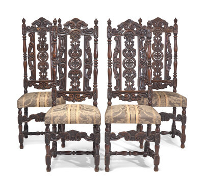 A Set of Four William & Mary Carved Walnut or Beech Side Chairs