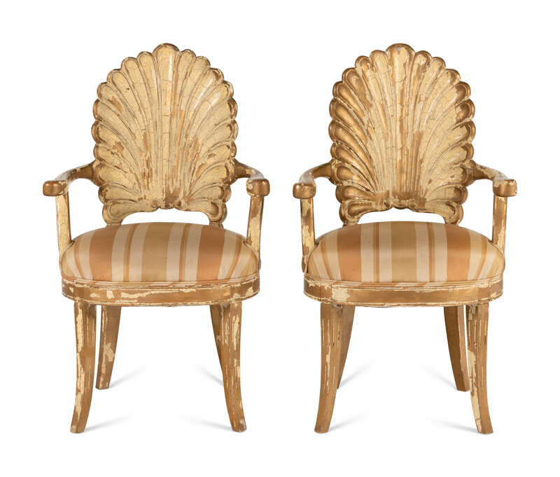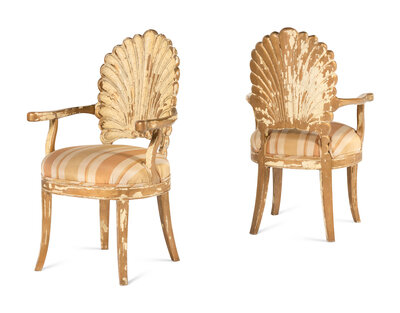 A Pair of Italian Carved Grotto Shellback Chairs