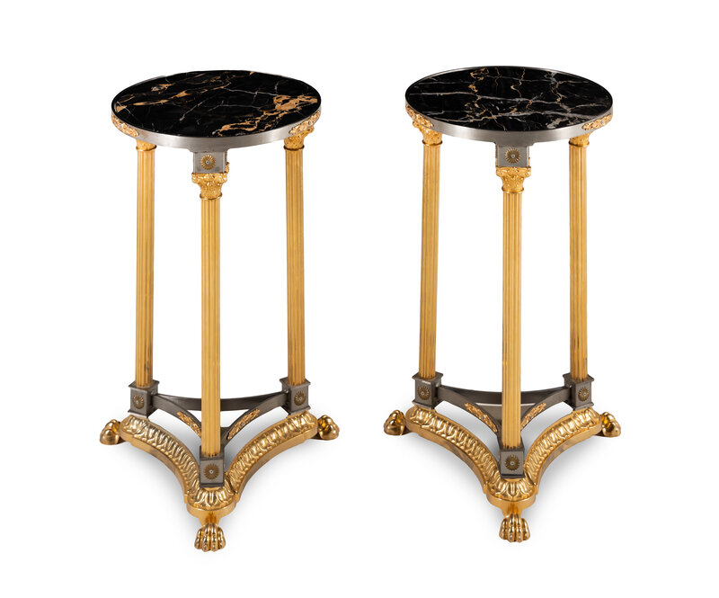 A Pair of Empire Style Gilt Bronze Mounted Marble-Top Side Tables