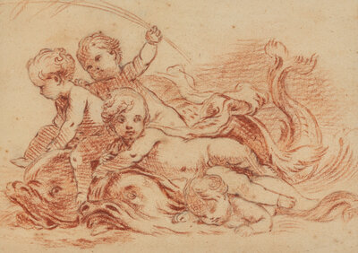Four Putti Frolicking with Dolphins
