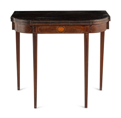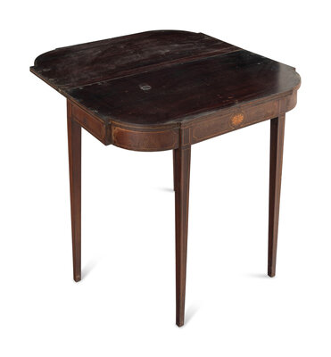 A George III Style Mahogany and Satinwood Marquetry Flip-Top Table