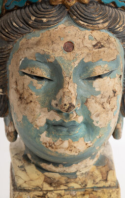 A Tibetan Polychrome Decorated Temple Carving