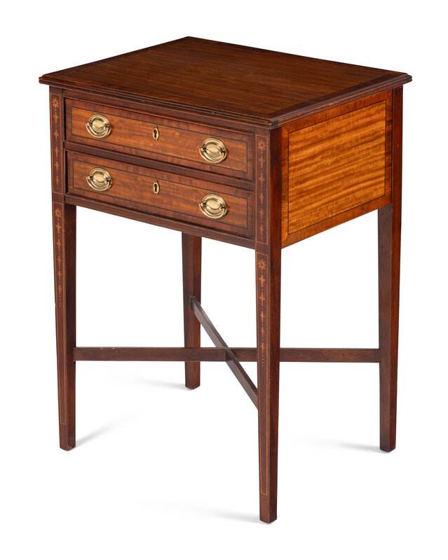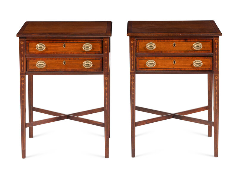 A Pair of Georgian Style Mahogany and Satinwood Side Tables