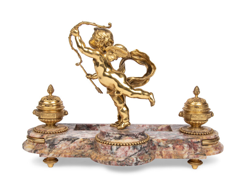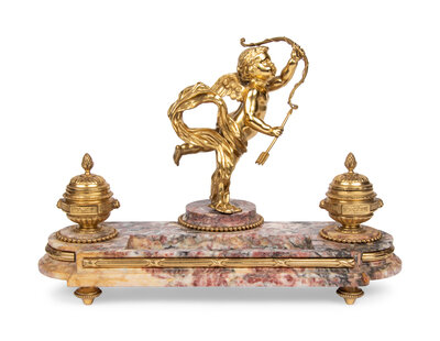 A French Gilt Bronze and Marble Encrier