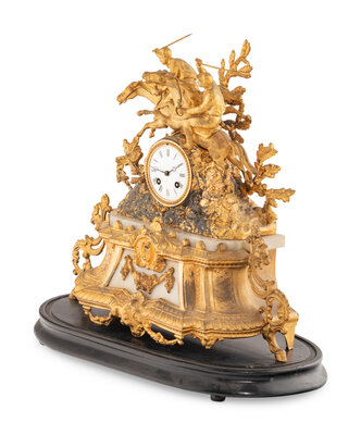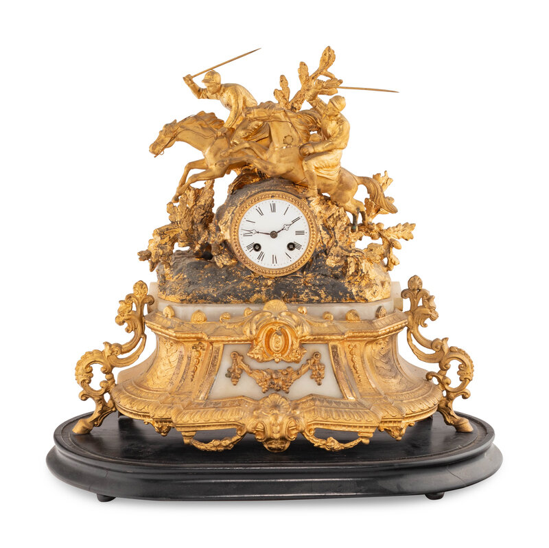 A French Gilt Metal and Alabaster Mantel Clock