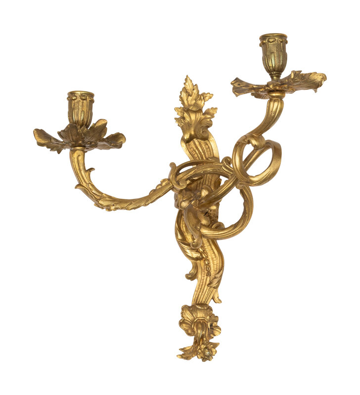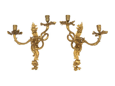 A Pair of Louis XV Style Gilt Bronze Two-Light Sconces