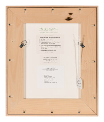signed and numbered 29/50 in ink, label to frame verso