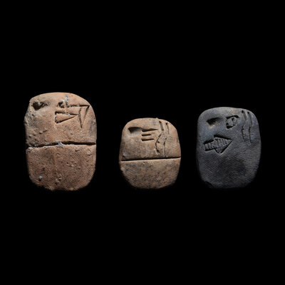 Three Mesopotamian Clay Proto-Cuneiform Tablets