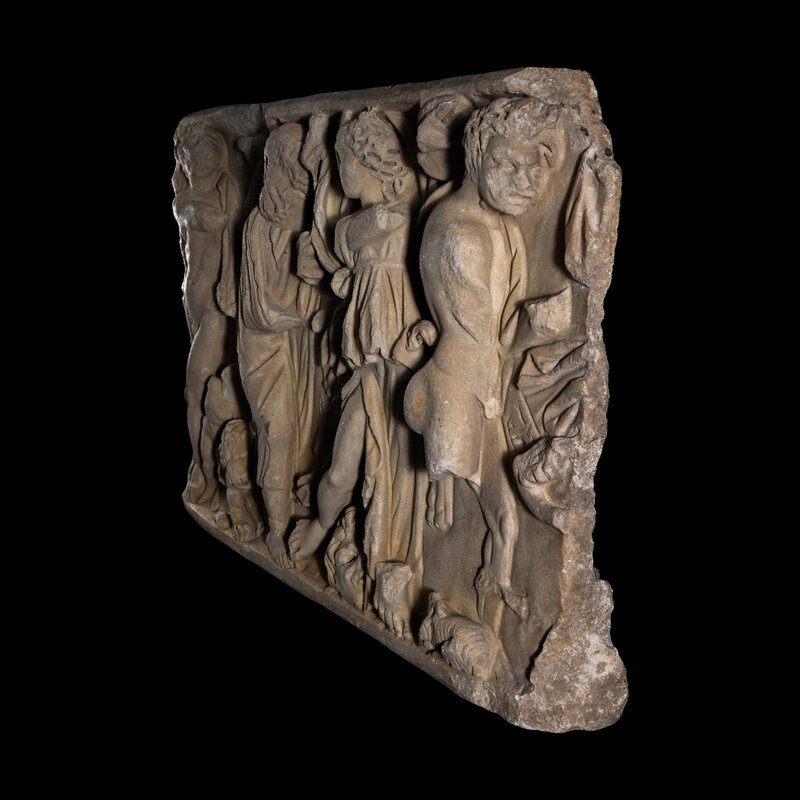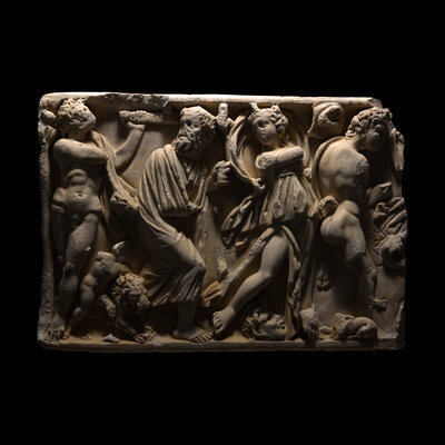 A Roman Marble Sarcophagus Fragment with a Dionysian Scene