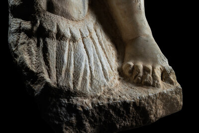 A Roman Marble Fragment from a Monumental Statue of the God Mars