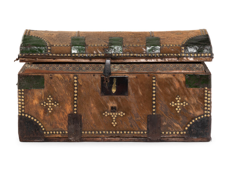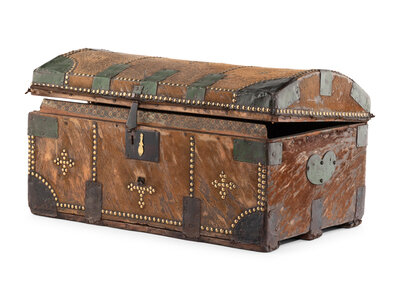 An English Brass Studded Hide-Clad Trunk