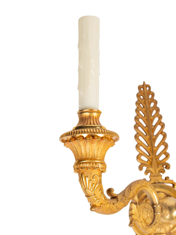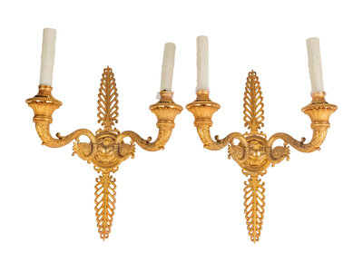 A Pair of French Gilt Bronze Two-Light Wall Sconces