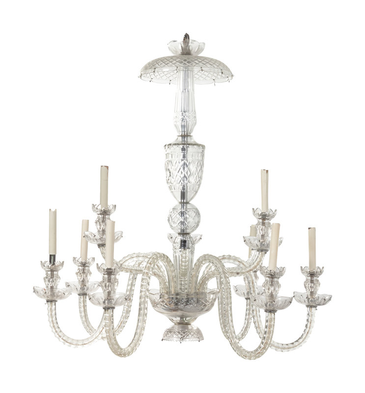 A George III Style Cut Glass Nine-Light Chandelier