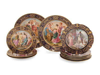 Three with 9 1/2 inch diameter, five with scalloped edges measuring 10 inches in diameter and two with a 12 1/2 inch diameter.