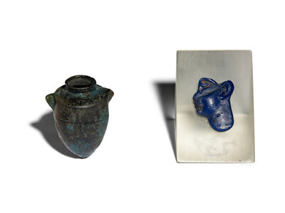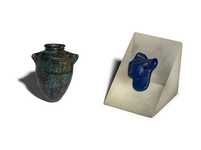 An Egyptian Glass Inlay and An Egyptian Faience Amphoriskos