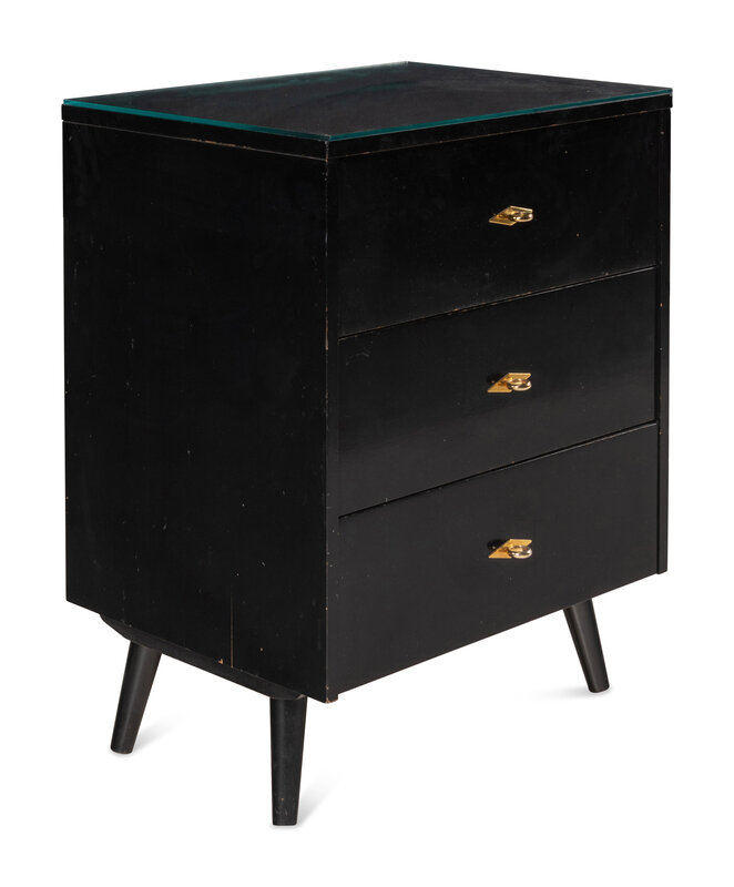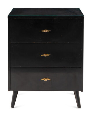 A Contemporary Black Lacquered Three-Drawer Nightstand