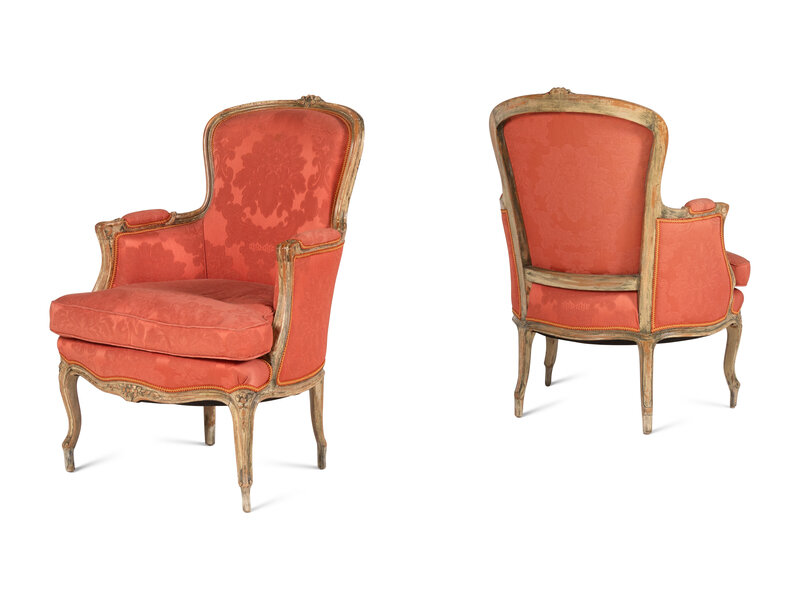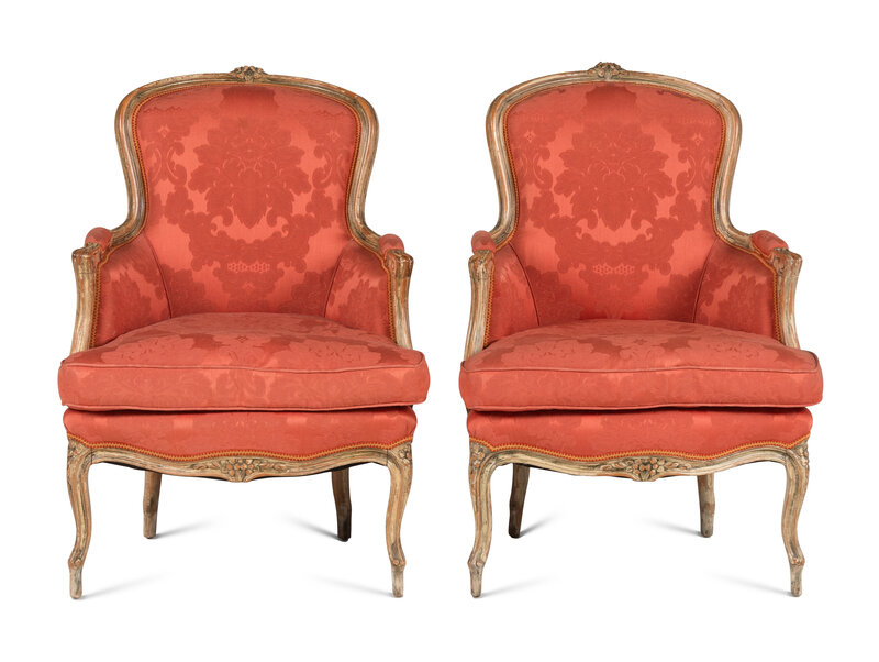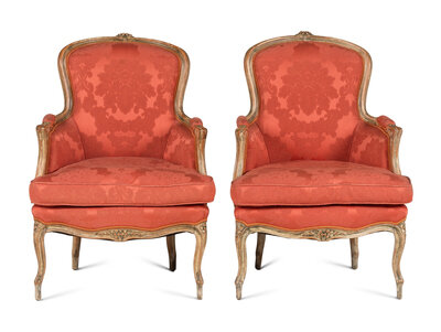 A Pair of Louis XV Style White-Painted Bergères