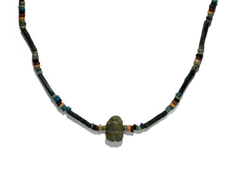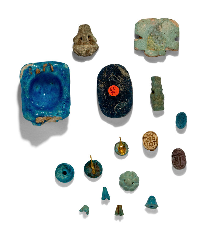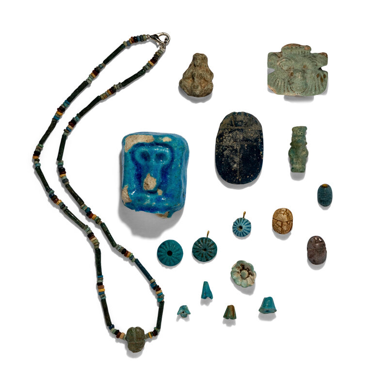 Seventeen Egyptian Faience, Stone, and Glass Objects