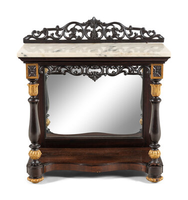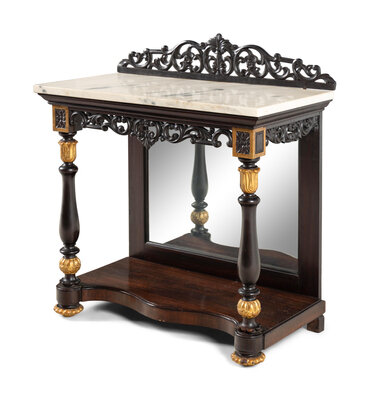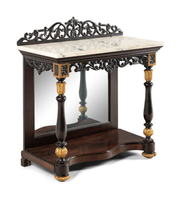 A Continental Parcel-Gilt Mahogany Marble-Top Pier Table