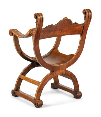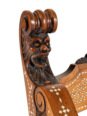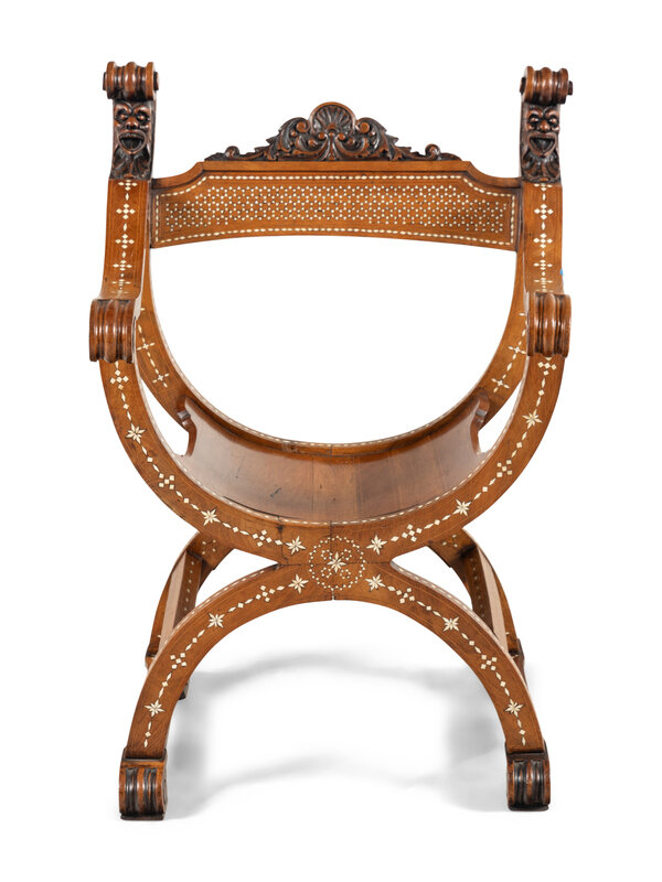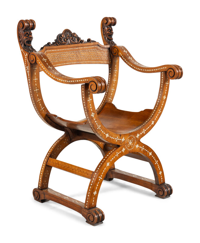 A North Italian Carved Walnut and Bone-Inlaid Savonarola Chair