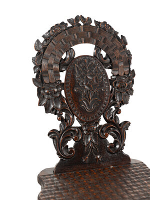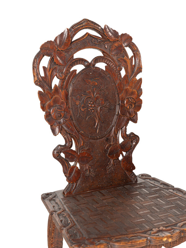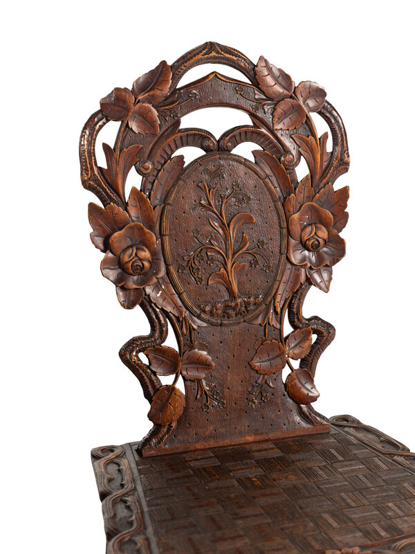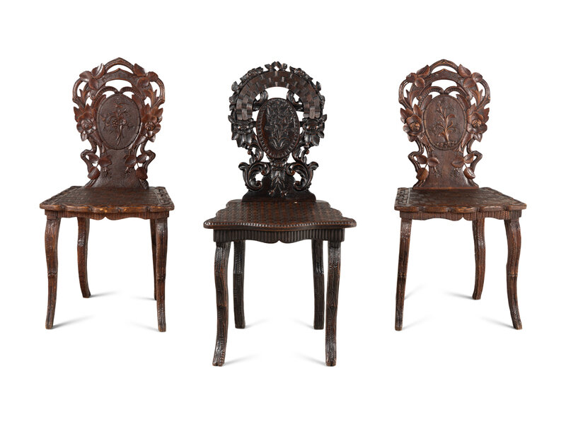 Three Black Forest Carved Side Chairs
