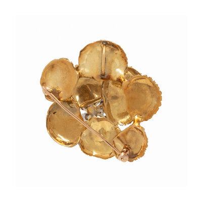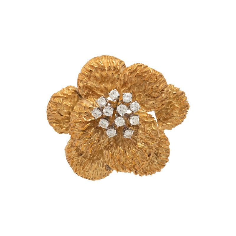 YELLOW GOLD AND DIAMOND FLOWER BROOCH