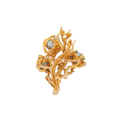 YELLOW GOLD, DIAMOND, AND CULTURED PEARL BRANCH BROOCH