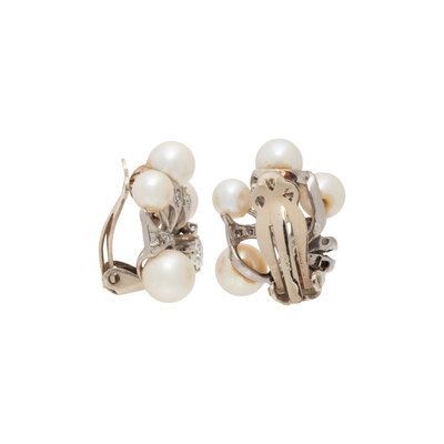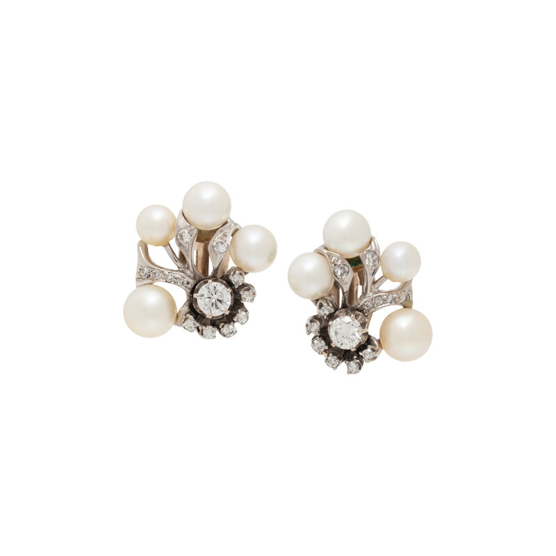 CULTURED PEARL AND DIAMOND EARRINGS
