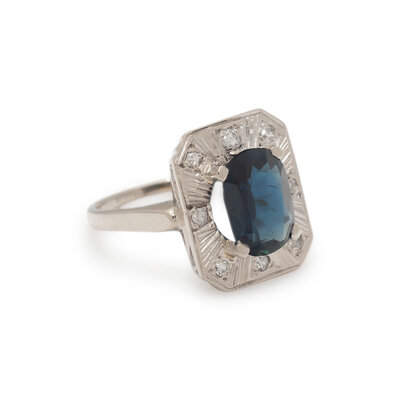 SAPPHIRE, DIAMOND, AND WHITE GOLD RING