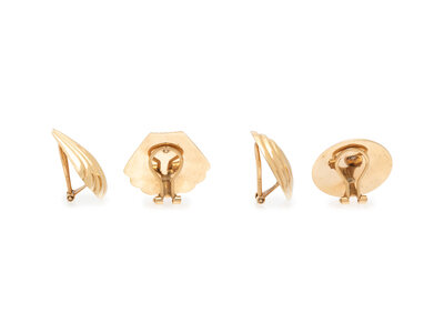 TWO PAIRS OF YELLOW GOLD EARRINGS