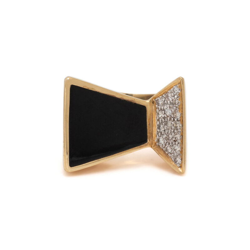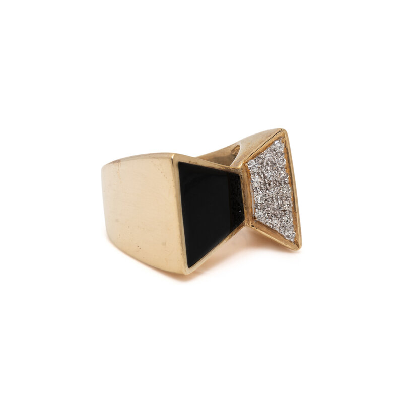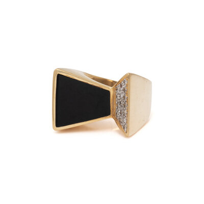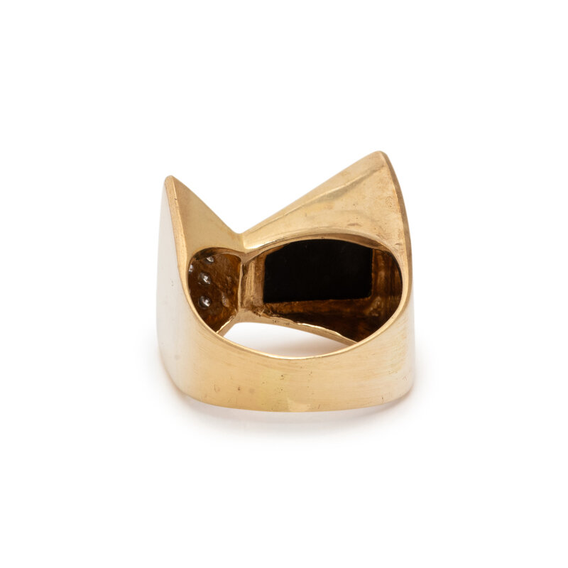 MODERNIST, YELLOW GOLD, DIAMOND, AND BLACK ONYX RING