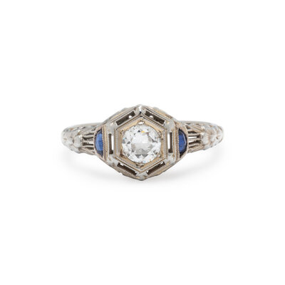 DIAMOND AND SYNTHETIC SAPPHIRE RING
