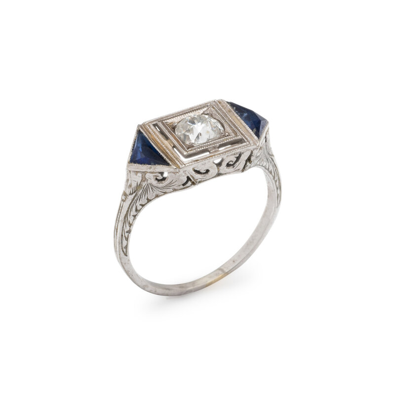 DIAMOND AND SYNTHETIC SAPPHIRE RING