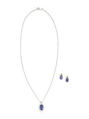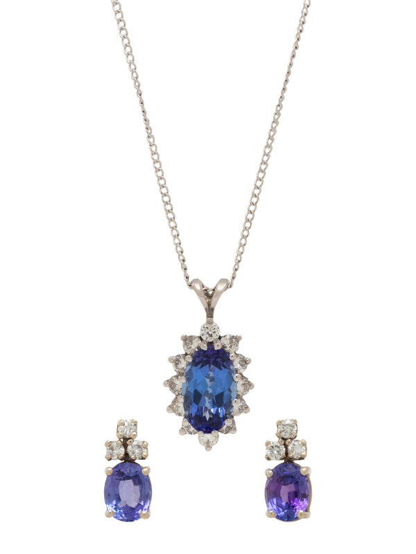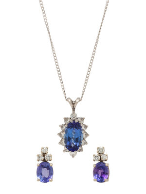 TANZANITE AND DIAMOND NECKLACE AND EARRINGS