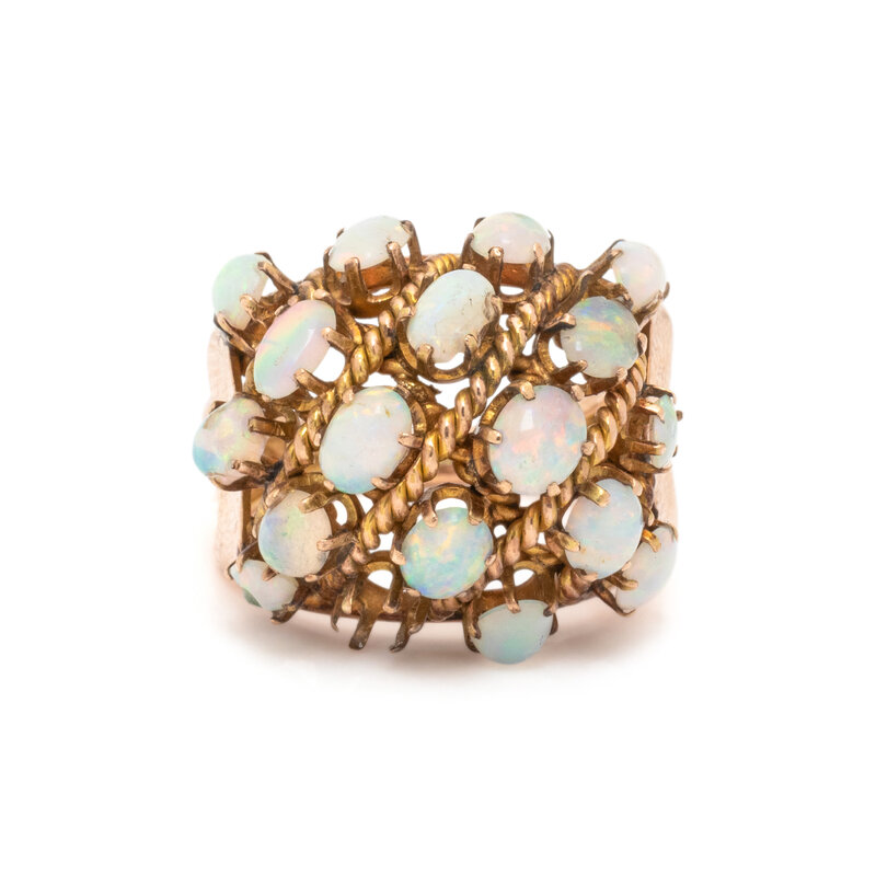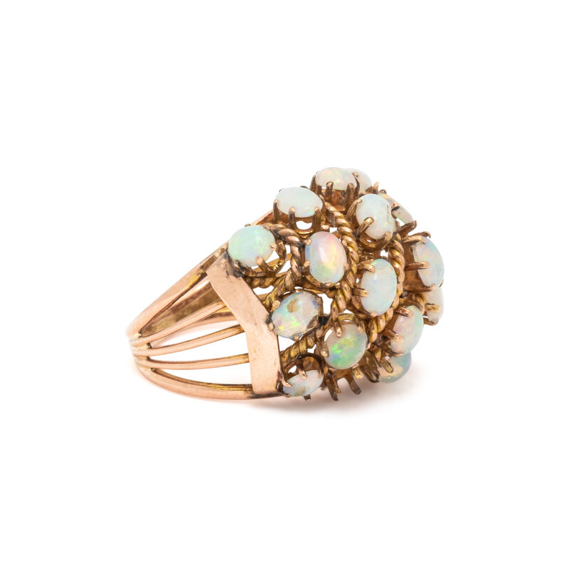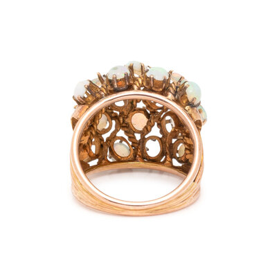 Oval cabochon opals. Yellow and rose gold. Ring size 6 1/4.