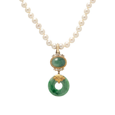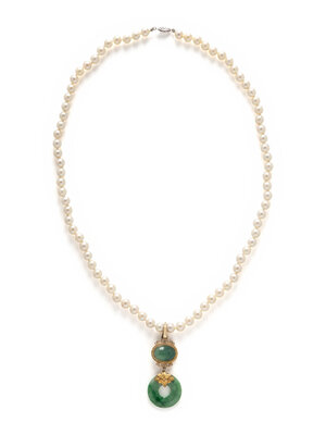 CULTURED PEARL NECKLACE WITH JADEITE PENDANT