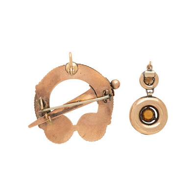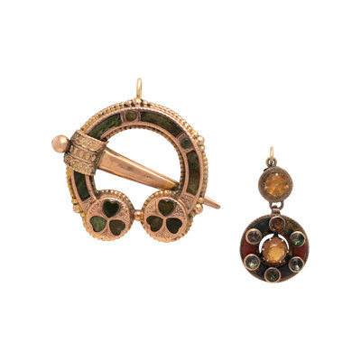 ANTIQUE, LOW KARAT GOLD AND SCOTTISH AGATE BROOCH AND PENDANT