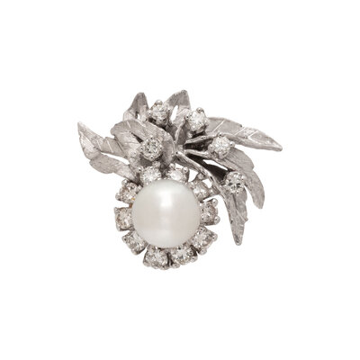 CULTURED PEARL, DIAMOND, AND WHITE GOLD ENHANCER