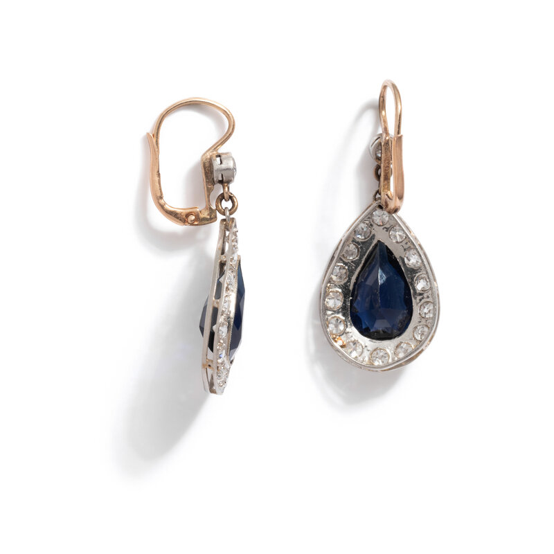 ANTIQUE, BLUE GLASS AND DIAMOND EARRINGS